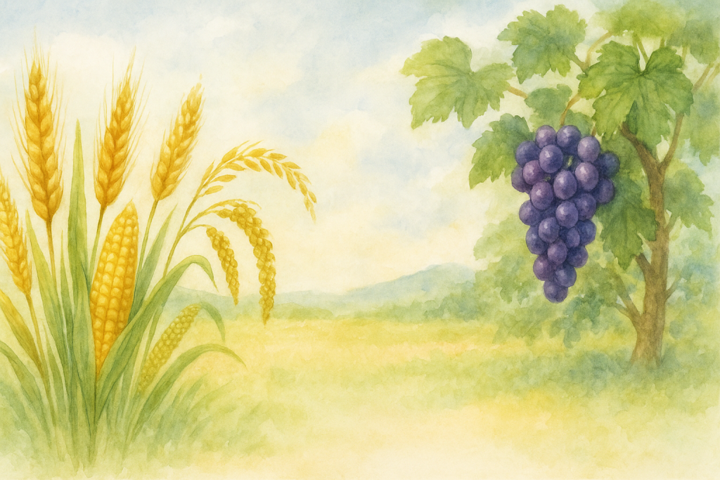 曾住在祂蔭下的必歸回,發旺如五榖,開花如葡萄樹。(何西阿書14:7)